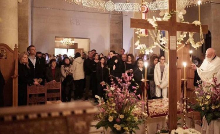 Ο Πρωθυπουργός με την σύζυγό του Μαρέβα Γκραμπόφκι Μητσοτάκη, παρακολούθησε την Ακολουθία του Επιτάφιου θρήνου στον ναό της Μονής που είναι αφιερωμένος στη Μεταμόρφωση του Σωτήρος, αλλά εορτάζει και στην εορτή της Αγίας Κυριακής.