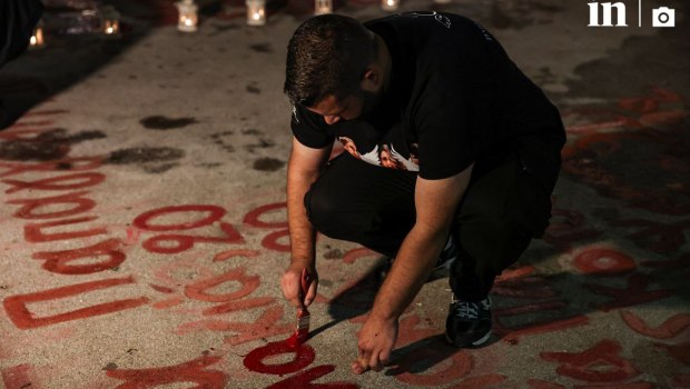 Συγγενείς θυμάτων γράφουν ξανά τα ονόματα μπροστά από τη Βουλή