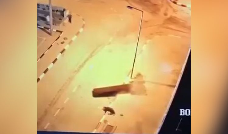 Πρόκειται για τη στιγμή που ο άνθρωπος χτυπήθηκε από την πτώση τμήματος της ατράκτου από έναν από τους αναχαιτισμένους πυραύλους του Ιράν.