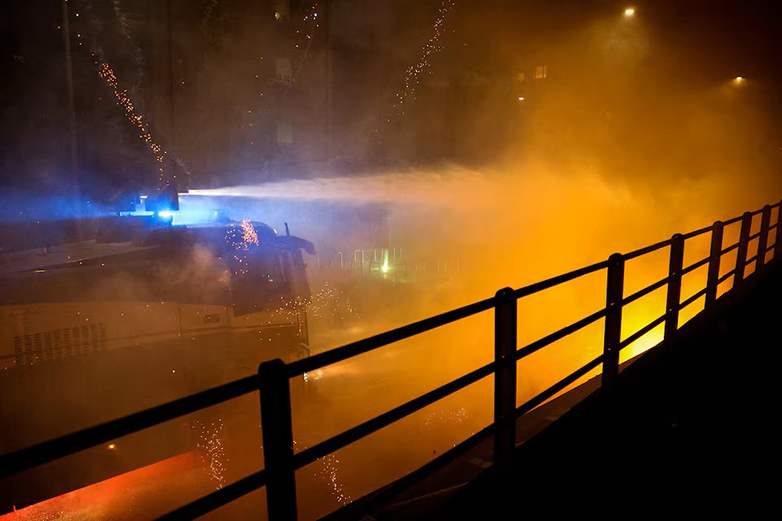 Η απάντηση από τις αστυνομικές δυνάμεις ήταν άμεση με χρήση κανονιών νερού και δακρυγόνων προσπαθώντας να διαλύσει το συγκεκριμένο μπλοκ των διαδηλωτών.