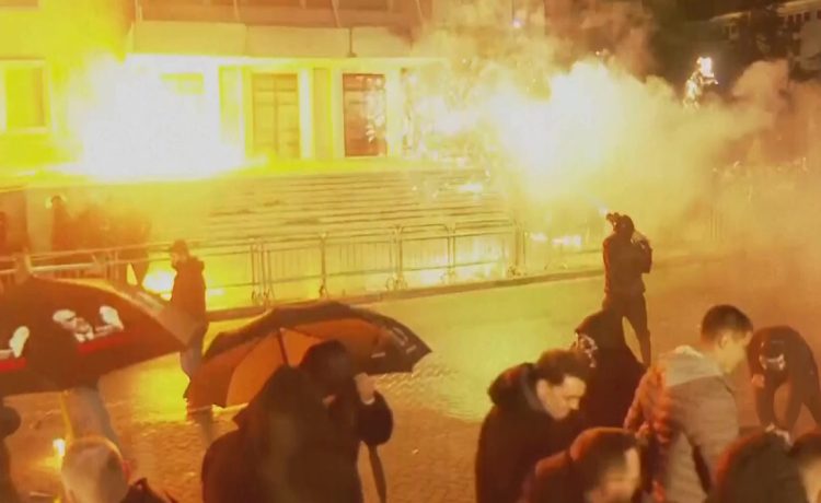 Anti-government protesters in Albania used firework launchers against riot police in Tirana tonight following a rally in support of opposition Democratic Party leader Sali Berisha pic.twitter.com/qI0IspTNGY