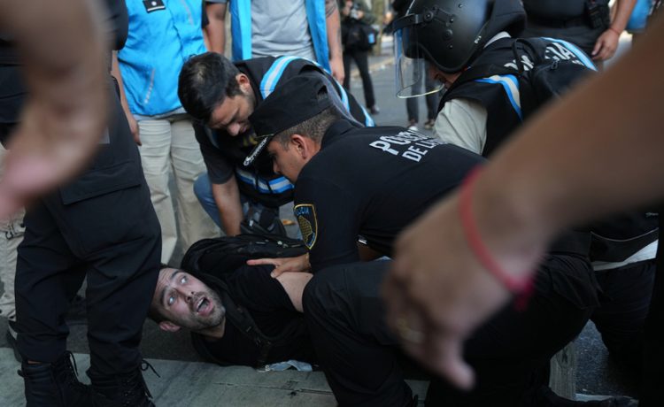 Συγκρούσεις μεταξύ αστυνομικών και μερικών δεκάδων διαδηλωτών ξέσπασαν χθες Πέμπτη στο Μπουένος Άιρες, στο περιθώριο της απεργιακής κινητοποίησης εναντίον της μεταρρύθμισης των εργασιακών σχέσεων που προωθεί ο πρόεδρος Χαβιέρ Μιλέι.