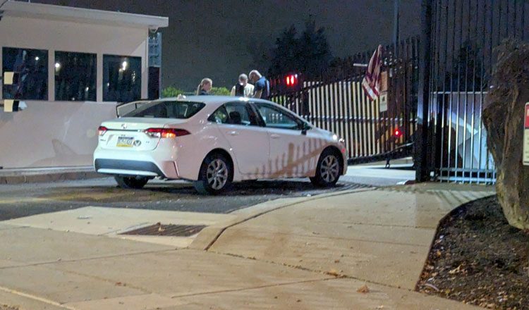 Το όχημα χτύπησε την πύλη γύρω στις 2:40 π.μ. (τοπική ώρα), μετά την οποία ο οδηγός έβγαλε μια αμερικανική σημαία από το πίσω κάθισμα και την εκσφενδόνισε πάνω από την πύλη πριν τραπεί σε φυγή, ανέφερε το Associated Press, επικαλούμενο τις αρχές.