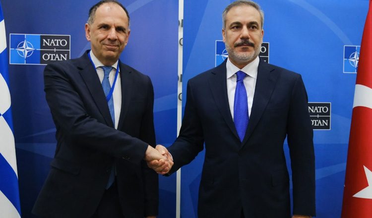 Στο πλαίσιο διατήρησης του θετικού κλίματος μεταξύ Ελλάδας και Τουρκίας, πραγματοποιήθηκε η συνάντηση του Έλληνα Υπουργού Εξωτερικών, Γιώργου Γεραπετρίτη με τον Τούρκο ομόλογό του, Χακάν Φιντάν, στο περιθώριο του Συμβουλίου Υπουργών Εξωτερικών του ΝΑΤΟ, την Τετάρτη 3 Απριλίου, στις Βρυξέλλες.