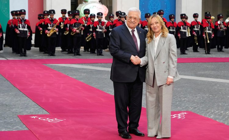 Η Ιταλίδα πρωθυπουργός Τζόρτζια Μελόνι συναντήθηκε το απόγευμα της Παρασκευής στο κυβερνητικό μέγαρο της Ρώμης Παλάτσο Κίτζι με τον πρόεδρο της Εθνικής Παλαιστινιακής Αρχής Μαχμούντ Αμπάς.