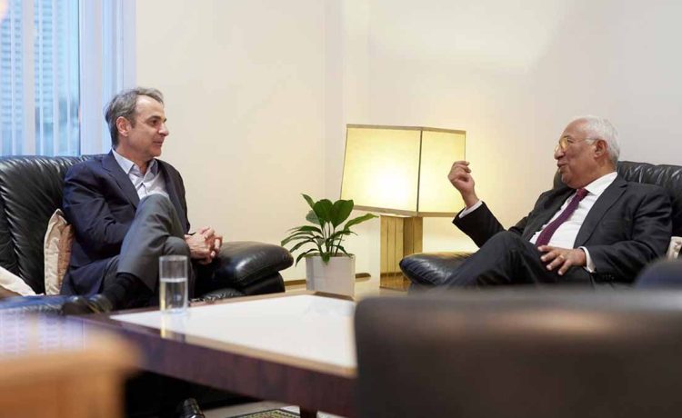 Με τον Πρόεδρο του Ευρωπαϊκού Συμβουλίου Αντόνιο Κόστα συναντήθηκε απόψε ο πρωθυπουργός Κυριάκος Μητσοτάκης στο Μέγαρο Μαξίμου. Κατά τη διάρκεια της συνάντησης ο κ. Κόστα ενημέρωσε τον πρωθυπουργό για την περιοδεία του στα Ηνωμένα Αραβικά Εμιράτα, στη Σαουδική Αραβία και στο Κατάρ.
