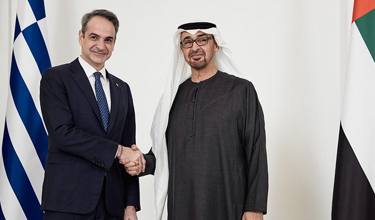O πρωθυπουργός, Κυριάκος Μητσοτάκης, συναντήθηκε στο Άμπου Ντάμπι με τον Πρόεδρο των Ηνωμένων Αραβικών Εμιράτων, Σεΐχη Mohamed bin Zayed Al Nahyan (Μοχάμεντ μπιν Ζαγέντ Αλ Ναχαγιάν).