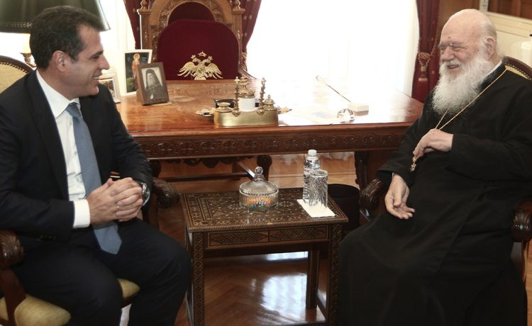 Συνάντηση του αρχιεπισκόπου Ιερωνύμου με τον υπουργό Μετανάστευσης και Ασύλου, Θ. Πλεύρη