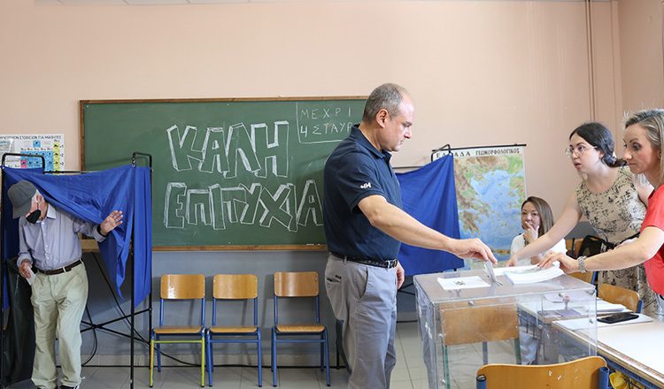 Στο 1ο Γυμνάσιο Κηφισιάς άσκησε το εκλογικό του δικαίωμα ο πρωθυπουργός Κυριάκος Μητσοτάκης, μαζί με τον γιο του Κωνσταντίνο.