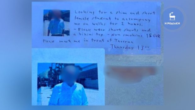 Στην «αγγελία» που ανήρτησε μπροστά από Λύκειο της Ρόδου, ο αλλοδαπός έγραφε: