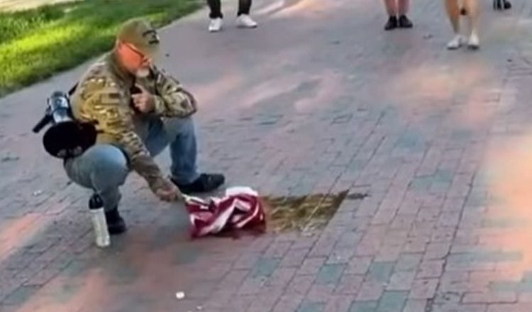 «Καίω αυτή τη σημαία σε ένδειξη διαμαρτυρίας εναντίον αυτού του παράνομου φασίστα προέδρου που έχει έδρα αυτό το οίκημα», είπε χρησιμοποιώντας τηλεβόα διαδηλωτής σε μικρό πάρκο όχι μακριά από τον Λευκό Οίκο, σύμφωνα με βίντεο που αναμεταδόθηκε μέσω ιστότοπων κοινωνικής δικτύωσης και μετέδωσαν επίσης αμερικανικά ΜΜΕ.