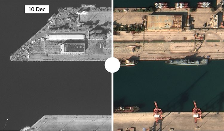 Οι εικόνες που τραβήχτηκαν από το Maxar στις 10 Δεκεμβρίου δείχνουν ότι ορισμένα πλοία έχουν εγκαταλείψει τη ναυτική βάση Ταρτούς από την Κυριακή και βρίσκονται επί του παρόντος στην ανοικτή θάλασσα στη Μεσόγειο.