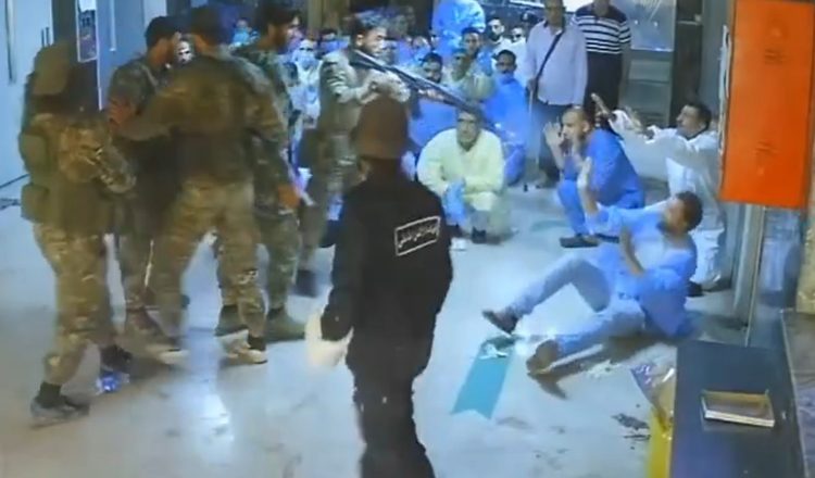 Σε αυτό διακρίνεται ομάδα προσώπων, προφανώς μελών του προσωπικού, συγκεντρωμένων, καθισμένων στο δάπεδο διαδρόμου. Ένοπλοι με στολές του στρατού και των δυνάμεων του υπουργείου Εσωτερικών τους δίνουν διαταγές. Ξαφνικά ξεσπά σύντομη αψιμαχία ανάμεσα σε νεαρό που το μέσο ενημέρωσης εξηγεί πως ήταν «εθελοντής της ιατρικής ομάδας» και μέλη των κυβερνητικών δυνάμεων. Τουλάχιστον από αυτούς διακρίνονται να τον πυροβολούν, ο πρώτος με ημιαυτόματο τουφέκι, ο δεύτερος με πιστόλι. Κατόπιν ένας από τους ενόπλους απομακρύνει το πτώμα σέρνοντάς το στο δάπεδο, αφήνοντας πίσω γραμμή αίματος.