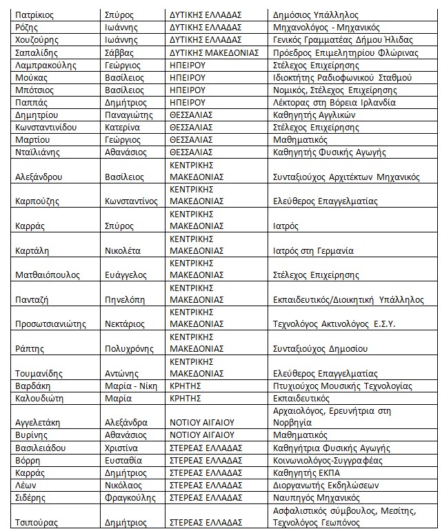Αναλυτικά τα ονόματα των υποψηφίων: