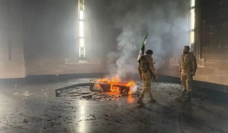 Εξαγριωμένοι Σύροι πυρπόλησαν την Τετάρτη, 11 Δεκεμβρίου, το μαυσωλείο του Χαφέζ αλ Άσαντ, του πατέρα του ανατραπέντος προέδρου, Μπασάρ αλ Άσαντ.
