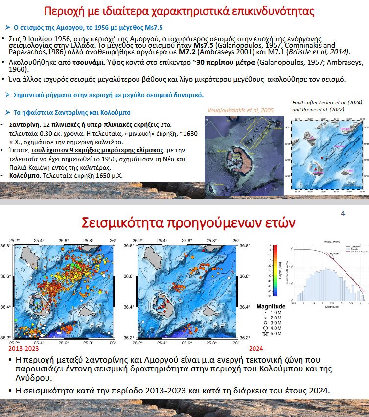 Οπως εξήγησε ο κ. Καραστάθης η σεισμική ακολουθία του Ιανουαρίου- Φεβρουαρίου 2025 ήταν η συνέχεια μιας σεισμικής διέγερσης την οποία οι κάτοικοι και οι επισκέπτες του νησιού δεν είχαν αντιληφθεί, αλλά οι επιστήμονες παρατηρούσαν στενά, και η οποία είχε ξεκινήσει την πορεία της στα τέλη του Αυγούστου του 2024.