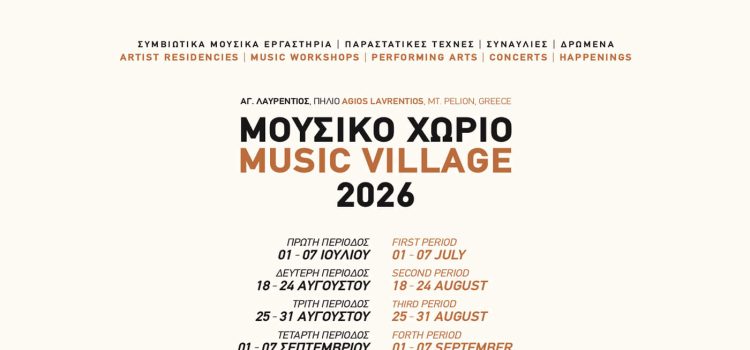 Με ένα πλούσιο και πολυδιάστατο πρόγραμμα δράσεων επιστρέφει το «Μουσικό Χωριό» το καλοκαίρι του 2026 στον Άγιος Λαυρέντιος Πηλίου, γιορτάζοντας φέτος τα 20 χρόνια από την ίδρυσή του. Πρόκειται για έναν καταξιωμένο θεσμό στον χώρο της μουσικής και των παραστατικών...