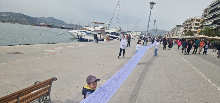 Ο καμβάς της ειρήνης της Κύπριας ποιήτριας Κυριακής Δράκου ξεδιπλώθηκε στην παραλία του Βόλου