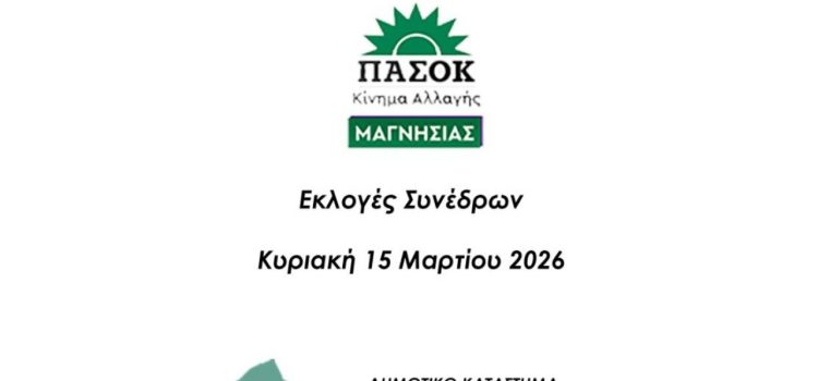 Στην Περιφερειακή Ενότητα Μαγνησίας και τις Σποράδες θα πραγματοποιηθεί την Κυριακή 15 Μαρτίου 2026 η διαδικασία εκλογής συνέδρων του ΠΑΣΟΚ – Κίνημα Αλλαγής, στο πλαίσιο της πανελλαδικής ψηφοφορίας για την ανάδειξη περίπου 4.000 συνέδρων που θα συμμετάσχουν στο συνέδριο του...