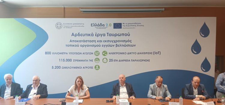 Υπογράφηκαν οι συμβάσεις των αρδευτικών δικτύων ΤΟΕΒ Ταυρωπού και Υπέρειας-Ορφανών
