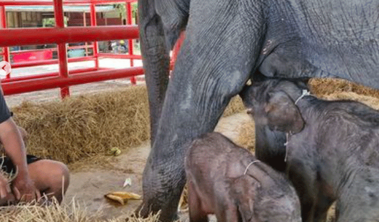 Μία ελεφαντίνα έφερε στον κόσμο δίδυμα στην Ταϊλάνδη, κάτι σπάνιο για το απειλούμενο αυτό είδος θηλαστικών, ύστερα από μια περιπετειώδη γέννα κατά την οποία τραυματίστηκε ένας φροντιστής. Όταν 18 λεπτά μετά τη γέννηση ενός αρσενικού βάρους 80 κιλών ήρθε στον κόσμο ένα θηλυκό ελεφαντάκι 60 κιλών, την Παρασκευή το βράδυ, η μητέρα, η Τζαμτζούρι, έπαθε νευρικό κλονισμό. Μέλος της ομάδας του κέντρου στο οποίο ζει η ελεφαντίνα επενέβη τότε για να την εμποδίσει να επιτεθεί στο δεύτερο ελεφαντάκι που ήρθε στον κόσμο, αλλά δέχθηκε ως αντίδραση χτύπημα στον αστράγαλο.