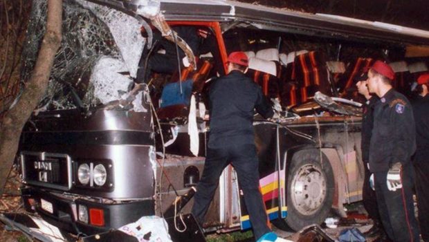 Είκοσι ένα παιδιά βρήκαν ακαριαίο θάνατο όταν η νταλίκα «δίπλωσε» και τα νοβοπάν πετάχτηκαν σαν τεράστιες λεπίδες κόβοντας στα δύο τις λαμαρίνες του λεωφορείου
