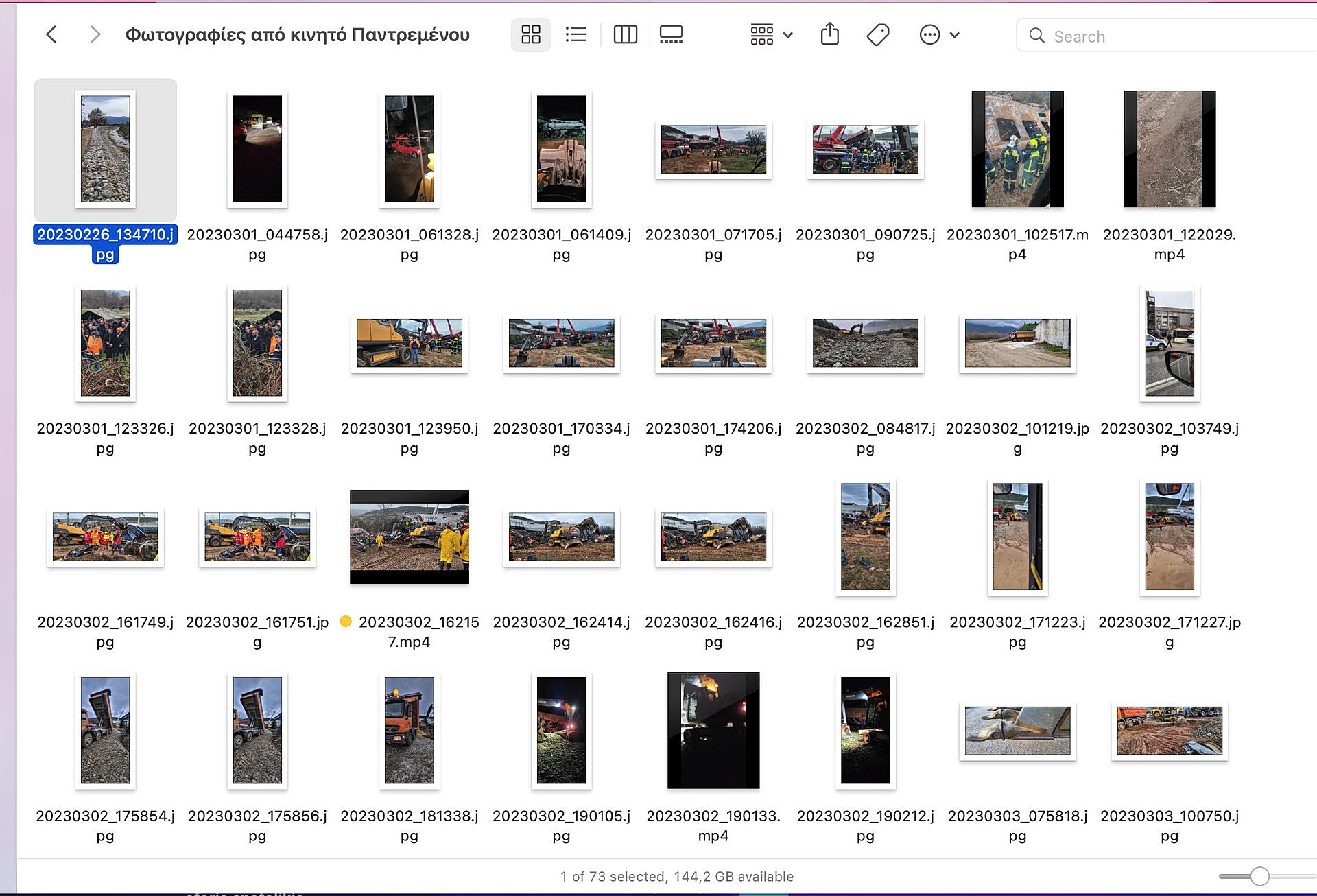 Σε έναν από τους φακέλους με αρχεία που είχαν στη διάθεσή τους οι δικαστικοί πραγματογνώμονες, με τίτλο «φωτογραφίες από κινητό Παντρεμένου», δεκάδες φωτογραφίες καταγράφουν τις εργασίες για το «ξεμπάζωμα και μπάζωμα» του χώρου, όπως έχουν τονίσει αρκετοί συγγενείς.