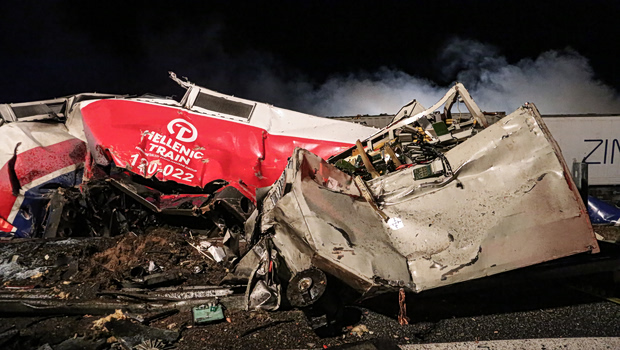 Εικόνες από drone από το πολύνεκρο σιδηροδρομικό δυστύχημα στα Τέμπη έξω από την Λάρισα, σύγκρουση εμπορικής και επιβατικής αμαξοστοιχίας, με 57 νεκρούς.