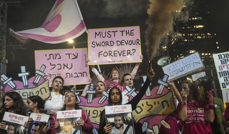 Οι διαδηλωτές κάλεσαν να συμφωνηθεί κατάπαυση του πυρός με διαπραγματεύσεις με τη Χαμάς, καθώς το Ισραήλ λέει πως έχει πλέον επιτύχει τους περισσότερους στρατιωτικούς στόχους του, συμπεριλαμβανομένης της εξόντωσης σε μάχη του ηγέτη του παλαιστινιακού ισλαμιστικού κινήματος Γιαχία Σινουάρ, που διαδέχθηκε τον Ισμαήλ Χανίγια, ο οποίος επίσης σκοτώθηκε σε ισραηλινή επιχείρηση στην Τεχεράνη.