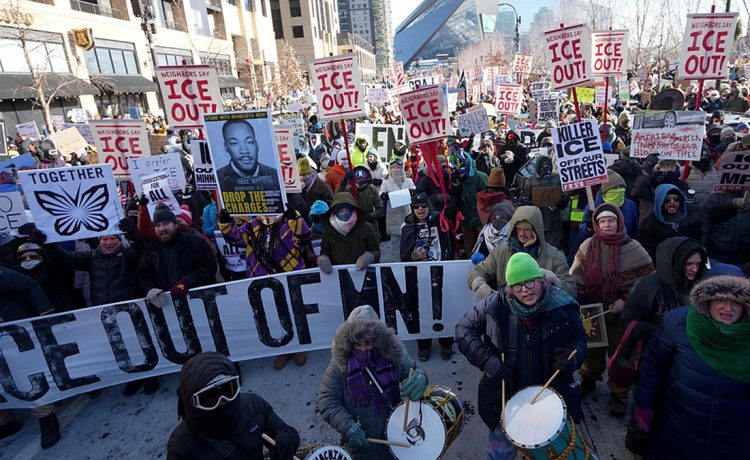 Σε μία από τις μεγαλύτερες κινητοποιήσεις των τελευταίων ετών στις Ηνωμένες Πολιτείες, δεκάδες χιλιάδες πολίτες κατέβηκαν την Παρασκευή 23/1, στους δρόμους της Μινεάπολης και άλλων πόλεων της Μινεσότα, αψηφώντας τις πολικές θερμοκρασίες, για να διαμαρτυρηθούν ενάντια στην παρουσία και τη δράση της ομοσπονδιακής υπηρεσίας Μετανάστευσης και Τελωνείων (ICE).