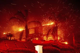 Οι θυελλώδεις άνεμοι που φυσούν τις τελευταίες ημέρες στην Καλιφόρνια, ήταν η αιτία της εκδήλωσης τεράστιας δασικής πυρκαγιάς η οποία επεκτάθηκε ταχύτατα, καίγοντας βίλες και πολυτελείς κατοικίες, ενώ επέφερε και την άμεση απομάκρυνση χιλιάδων κατοίκων από τις εστίες τους.