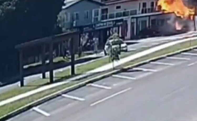 A small single-engine plane crashed into a restaurant roof in Brazil, triggering an explosion and fire that spread to at least two nearby homes, killing all four people on board ⤵️ pic.twitter.com/uK3xyIbnkt