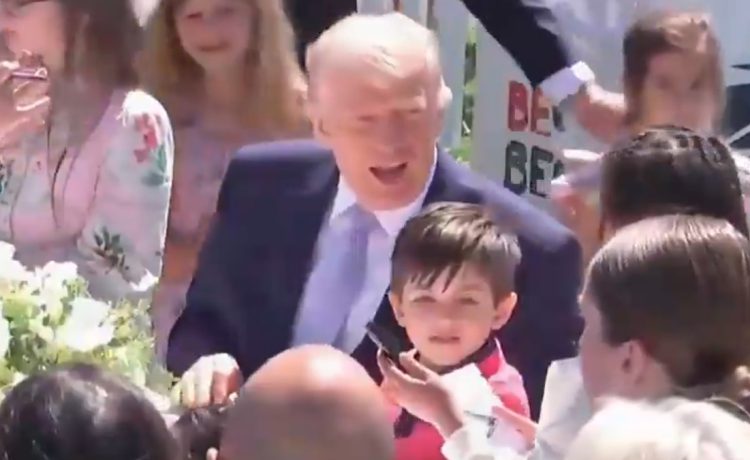 Ειδικότερα, κατά τη διάρκεια της παραδοσιακής γιορτής egg roll στους κήπους της προεδρικής κατοικίας, που πραγματοποιείται τη Δευτέρα του Πάσχα, ο Τραμπ βρέθηκε ανάμεσα στα παιδιά που συμμετείχαν στη γιορτή, μαζί με τη σύζυγό του, Μελάνια, και έναν πασχαλινό λαγό.
