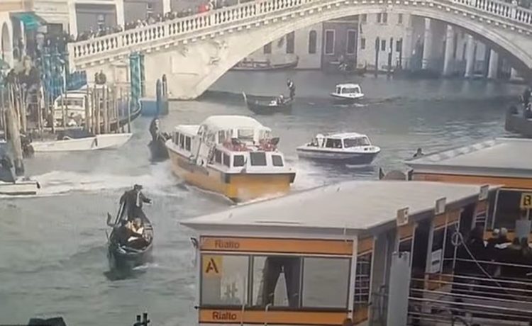 Ένα σκάφος που μετέφερε τουρίστες συγκρούστηκε με γόνδολες στο Μεγάλο Κανάλι της Βενετίας, με αποτέλεσμα οι επιβάτες να πέσουν στο νερό.