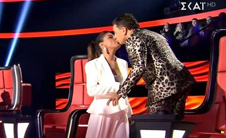 Με το ξεκίνημα του live, η Έλενα Παπαρίζου μπήκε στο πλατό και αντάλλαξε φιλί στο στόμα με τον Γιώργο Μαζωνάκη, αφήνοντας άφωνο το κοινό, αλλά και τους υπόλοιπους coaches.
