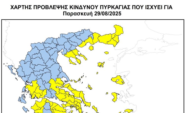 Την Παρασκευή 29 Αυγούστου 2025 η Θεσσαλία θα βρεθεί σε καθεστώς αυξημένης ετοιμότητας λόγω υψηλού κινδύνου πυρκαγιάς (Κατηγορία 3), σύμφωνα με τον Ημερήσιο Χάρτη Πρόβλεψης της Γενικής Γραμματείας Πολιτικής Προστασίας. Η πρόβλεψη αφορά περιοχές της Π.Ε. Μαγνησίας, ιδίως την περιοχή ευθύνης του Δασαρχείου Αλμυρού, καθώς και τις Σποράδες.