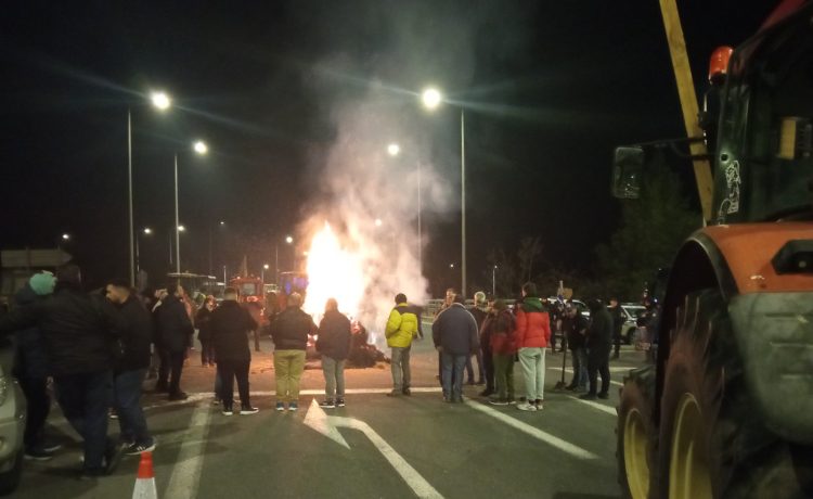Σε αποκλεισμό όλων των δρόμων στον κόμβο της Γυρτώνης προχώρησαν χθες το απόγευμα οι αγρότες στο μπλόκο, οι οποίοι έβαλαν φωτιά σε μπάλες με άχυρο και υποδέχθηκαν εκπροσώπους φορέων ενημερώνοντας τους για τα αιτήματα τους εν όψει της αυριανής μεσημεριανής συνάντησης με το κλιμάκιο των υπουργών της κυβέρνησης στο υπουργείο Αγροτικής Ανάπτυξης και Τροφίμων στην Αθήνα.