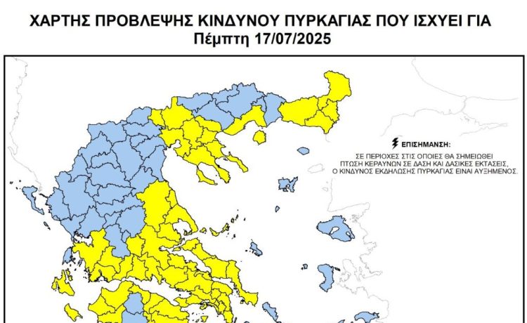 Σε αυξημένη ετοιμότητα τίθενται οι αρμόδιες υπηρεσίες και φορείς της Περιφέρειας, σε συνεργασία με το Πυροσβεστικό Σώμα και τις Δασικές Υπηρεσίες, για την πρόληψη και άμεση αντιμετώπιση πιθανών πυρκαγιών καθώς για αύριο Πέμπτη 17 Ιουλίου σύμφωνα με τον Ημερήσιο Χάρτη Πρόβλεψης Κινδύνου Πυρκαγιάς της Γενικής Γραμματείας Πολιτικής Προστασίας προβλέπεται Κατηγορία Κινδύνου 3 (υψηλή).