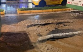 Λίγα λεπτά μετά το σπάσιμο του αγωγού στο σημείο κατέφθασε ένα περιπολικό της αστυνομίας και διέκοψε την κυκλοφορία επί της Αγίου Δημητρίου.