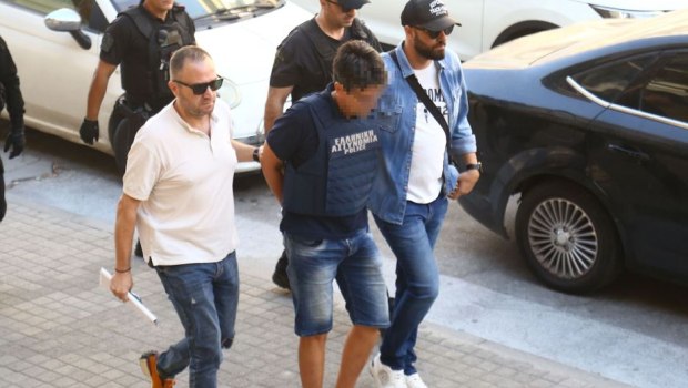 Ο αδελφοκτόνος έφτασε στα δικαστήρια Θεσσαλονίκης υπό δρακόντεια μέτρα ασφαλείας και υπό αυστηρή αστυνομική συνοδεία.