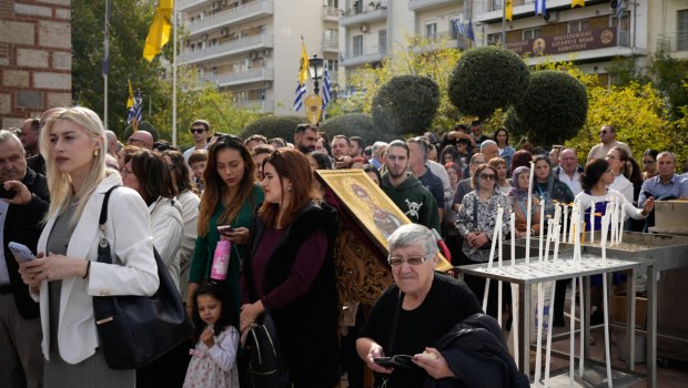 Πιστοί συνέρευσαν στην εκκλησία για να προσκυνήσουν τα λείψανα του Αγίου Δημητρίου και την εικόνα της Παναγίας Φανερωμένης Βαθυρρύακος από την ομώνυμη ιερά μονή της Κομοτηνής, η οποία από τις 15 Οκτωβρίου εκτίθεται σε λαϊκό προσκύνημα.