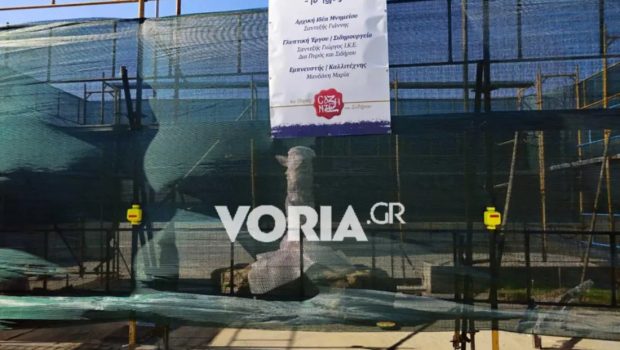 Το μνημείο είναι περιφραγμένο και έως τώρα έχει τοποθετηθεί η μεγάλη βάση και ο κορμός.