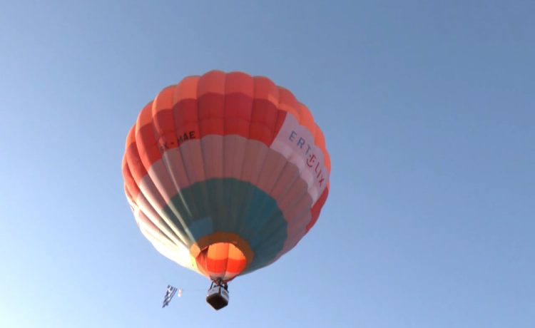 Πρώτο απογειώθηκε το αερόστατο του ERTFLIX με την ελληνική σημαία δεμένη στα σχοινιά του.