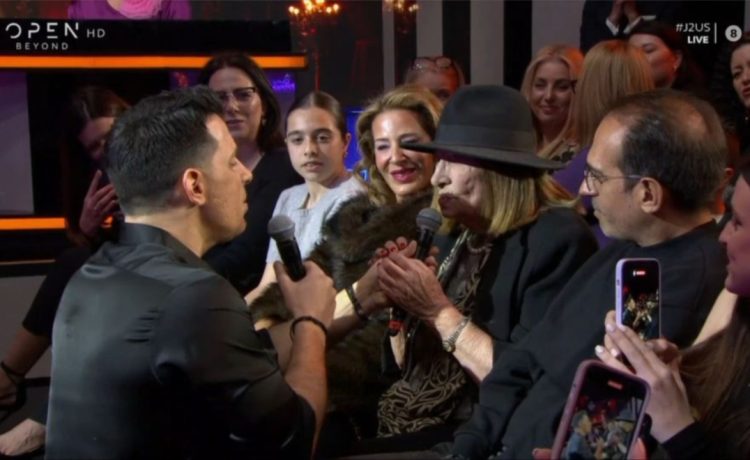 Ο τραγουδιστής πλησίασε τη μητέρα του και οι δυο τους ερμήνευσαν μαζί το κομμάτι «Δίδυμα Φεγγάρια», προσφέροντας μια ιδιαίτερα συγκινητική στιγμή στο πλατό.