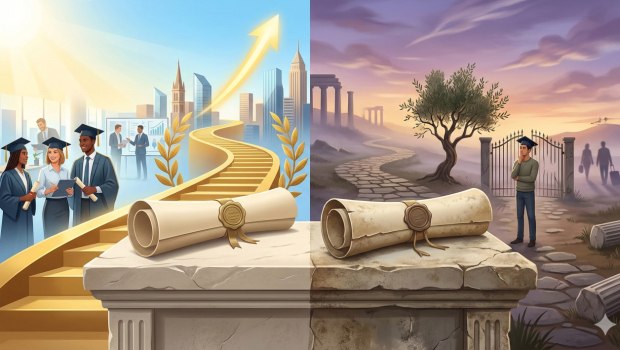 Για δεκαετίες, το πτυχίο τριτοβάθμιας εκπαίδευσης θεωρούνταν από την κοινωνία ως το απόλυτο εχέγγυο για επαγγελματική αποκατάσταση, κοινωνική ανέλιξη και οικονομική ασφάλεια.