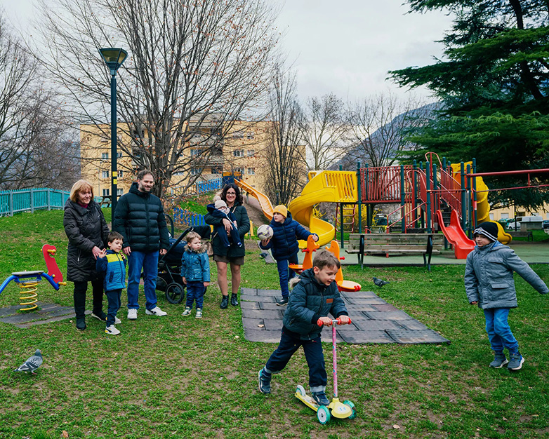 Η κάρτα Family +, διαθέσιμη σε όλες τις οικογένειες με τρία ή περισσότερα παιδιά, τους έδινε το δικαίωμα έκπτωσης 20% σε πολλές προμήθειες σε όλη την πόλη και συνδέθηκε με το τοπικό σούπερ μάρκετ Despar για πρόσθετες εκπτώσεις. Η κ. Μπαλζαμά είπε ότι έκανε χρήση και εξοικονόμηση πόρων στα μέσα μαζικής μεταφοράς.