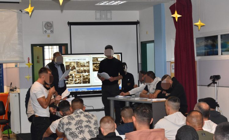 Με αφορμή την εθνική επέτειο της 28ης Οκτωβρίου, οι εκπαιδευόμενοι και οι εκπαιδευτές των Σχολείων των Φυλακών Λάρισας παρουσίασαν σήμερα τη θεατρική εκπομπή «Τομές στην Επικαιρότητα – Από το Όχι στο Σήμερα», ένα πρωτότυπο θεατρικό δρώμενο που συνδύασε την ιστορική μνήμη με τη σύγχρονη κοινωνική προβληματική.
