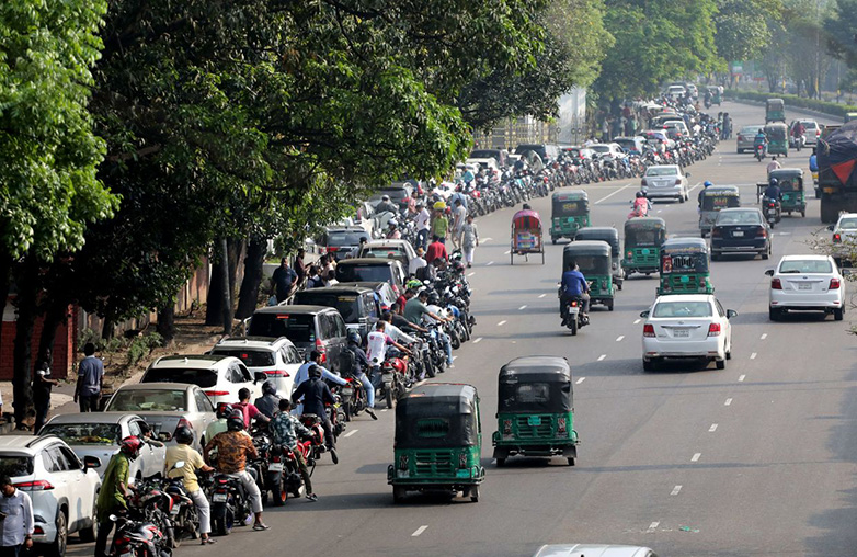Τα μέσα κοινωνικής δικτύωσης είναι πλέον γεμάτα με εικόνες από μεγάλες ουρές σε βενζινάδικα σε όλη τη Ντάκα, την πρωτεύουσα του Μπαγκλαντές, και η κατάσταση φέρεται να είναι ακόμη πιο οξεία σε άλλα μέρη του έθνους της Νότιας Ασίας που πλήττονται από τη σοβαρή ενεργειακή κρίση που προκλήθηκε από τη σύγκρουση στη Μέση Ανατολή.