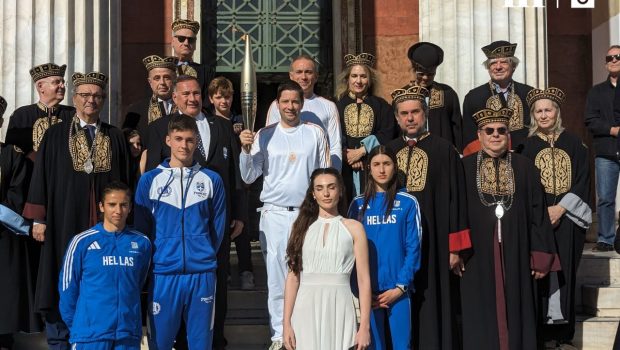 Το Ολύμπιο Φως, φορέας του μηνύματος της ειρήνης και της συνύπαρξης μέσα από τα Ολυμπιακά Ιδεώδη, ταξίδεψε από την Αρχαία Ολυμπία σε ολόκληρη την Ελλάδα και λίγο πριν καταλήξει στο Καλλιμάρμαρο Παναθηναϊκό Στάδιο, την τελευταία μέρα της Λαμπαδηδρομίας στην Ελλάδα, για την Τελετή Παράδοσης στο «Παρίσι 2024», έκανε μία τελευταία στάση με ιδιαίτερο συμβολισμό στο Εθνικό και Καποδιστριακό Πανεπιστήμιο Αθηνών, αναδεικνύοντας για μια ακόμη φορά το ΕΚΠΑ ως κεντρικό τοπόσημο της Πόλης της Αθήνας, βασικό θεσμό που πορεύεται σχεδόν παράλληλα με το νεοελληνικό Κράτος, εκπέμποντας παγκοσμίως ένα ισχυρό συμβολικό μήνυμα για την σημασία της Γνώσης στην κοινωνία μας και τον κυρίαρχο ρόλο του ΕΚΠΑ.