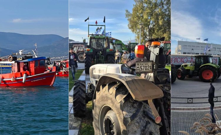 Με τρακτέρ οι αγρότες από ξηράς και με δεκάδες καΐκια οι αλιείς από θαλάσσης επιχειρούν αποκλεισμό του λιμανιού του Βόλου παρουσία ισχυρών αστυνομικών δυνάμεων.